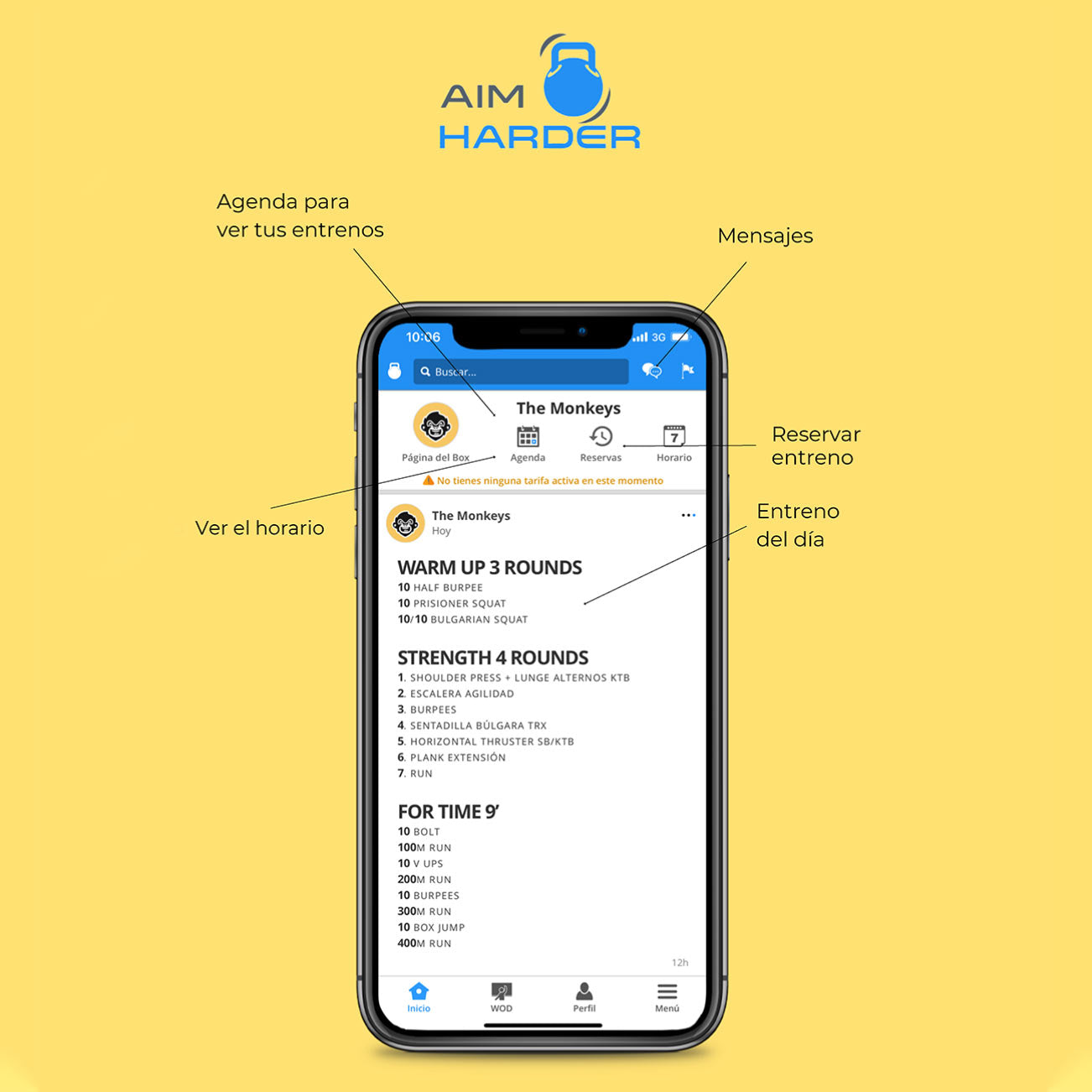 Con nuestra aplicación de reservas podrás organizar todos tus entrenos, ver los entrenamientos del día, hablar con tus compañeros y coaches, realizar los pagos de tus tarifas y llevar un control de cuántos días has asistido a clase.
